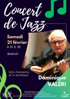 Professeur de guitare pendant 45 ans, Dominique Valeri s'est produit en quartet à Paris, Lisbonne et dans de nombreux clubs en France (dont le Quartz à Brest). Pour ce concert, il jouera ses propres compositions et interprétera de grands classiques du répertoire jazz.