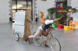 À bord de son vélo à voyager dans le temps, le Professeur Climatix débarque du futur. Son objectif : “Augmenter le profil écologique moyen des français et françaises afin de pouvoir profiter d'un futur radieux”. En effet, le futur proche d’où il vient, à savoir 2044, n’est pour l’instant pas très encourageant. Accompagné par une femme qui trie ses déchets mais roule en SUV, notre professeur voyagera à travers le temps et questionnera avec le public nos modes de consommation. C’est ensemble qu’ils espèrent trouver le chemin d’un futur plus enthousiasmant. Si l'utilisation du vélo est au centre de notre histoire, de nombreux autres thèmes sont explorés : réemploi, réparation, isolation, alimentation, mode, chauffage, voyage, transports, etc... Autant de pistes permettant à chacun de faire un pas vers plus de sobriété dans ses modes de consommation.