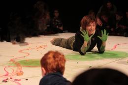 Un spectacle où les réactions des enfants sont laissées libres, et où ils peuvent être amenés à manipuler de la couleur avec de la craie. Prévoir des habits non fragiles.