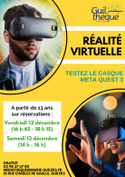 Venez vivre une expérience immersive avec le casque de réalité virtuelle Meta Quest 3 ! Réservez un créneau le samedi 13 décembre (14 h - 16 h). Thomas vous accompagnera pour cette découverte.